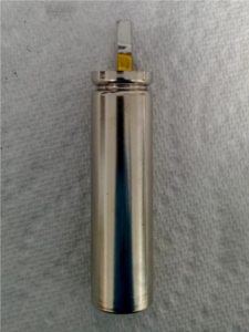 The 18650 cells produced as a result of this process are being cycled between 3.0 and 4.2V. An example of one of these cells is shown below in Figure 4.